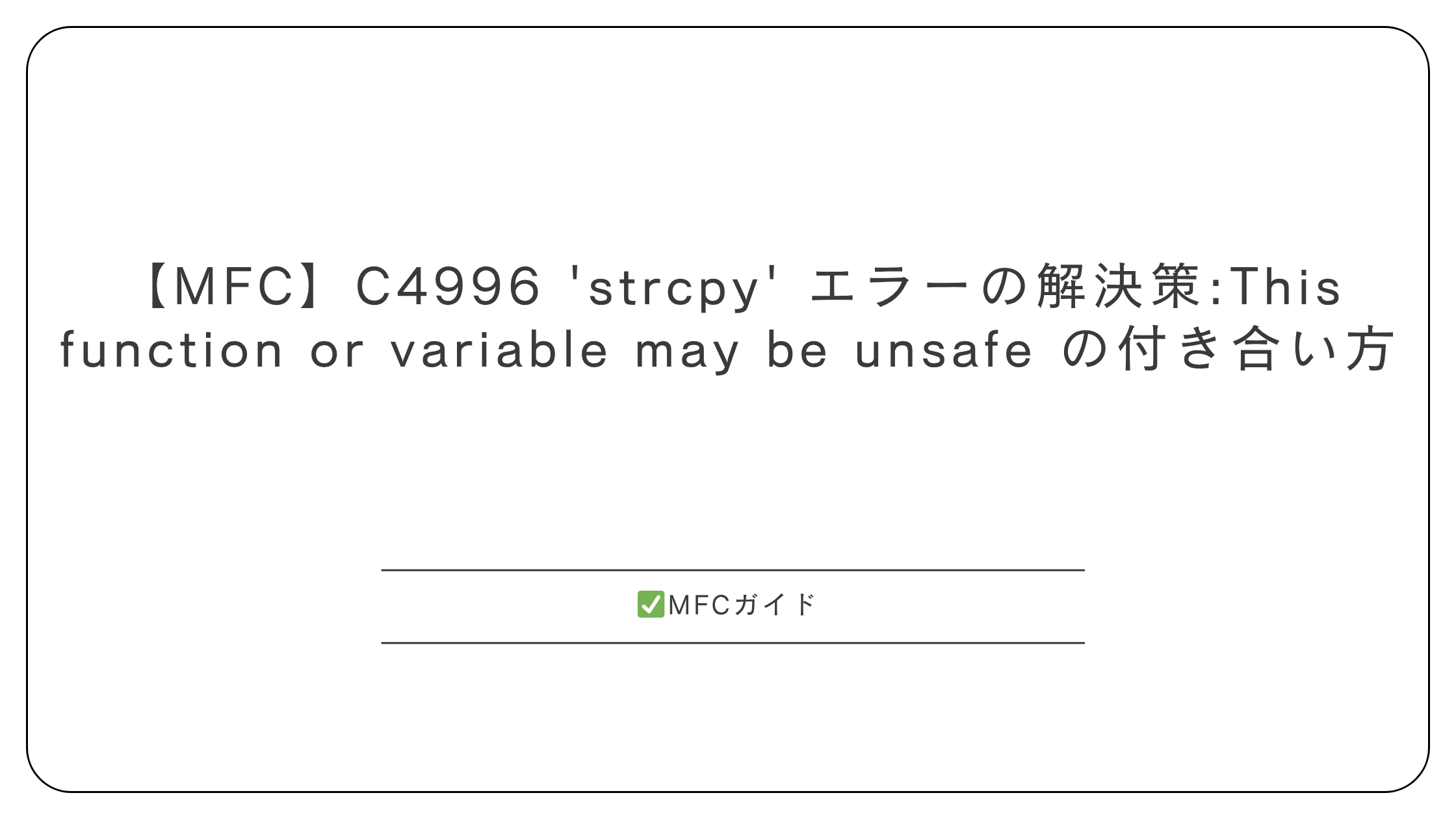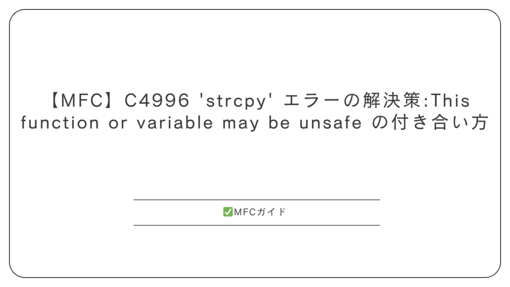 【MFC】警告 C4996 ‘strcpy’ エラーの解決策: This function or variable may be unsafe の付き合い方